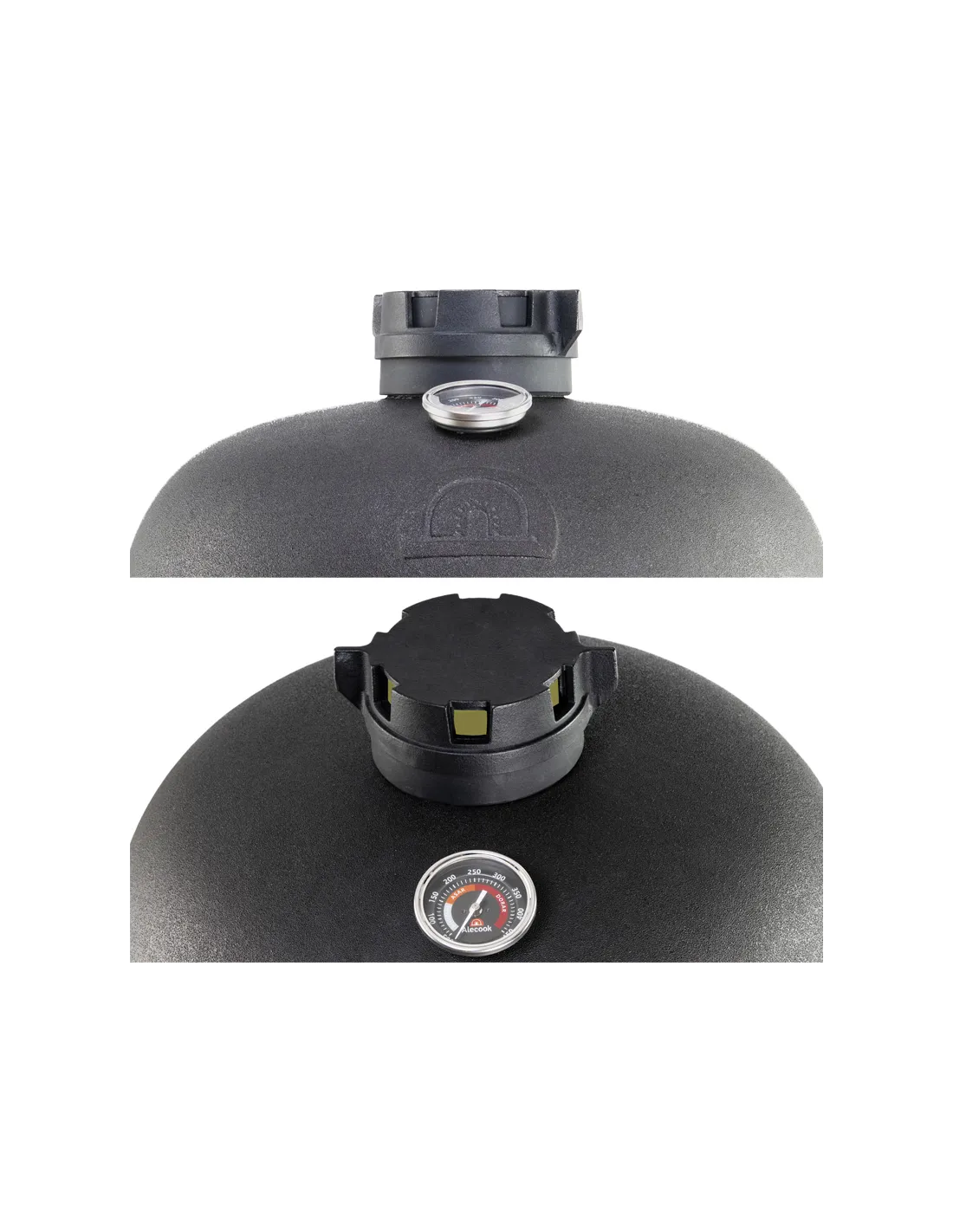 Les barbecues Kamado d'Alecook (2 niveaux de cuisson) conviennent aussi bien aux débutants qu'aux professionnels. Grâce à des innovations comme la charnière Light Touch, le système de contrôle des fumées de qualité supérieure, fabriqué en fonte, et le boîtier en céramique à parois épaisses permettent un contrôle précis de la température et garantissent que la fumée et l'humidité restent à l'intérieur pendant la cuisson.