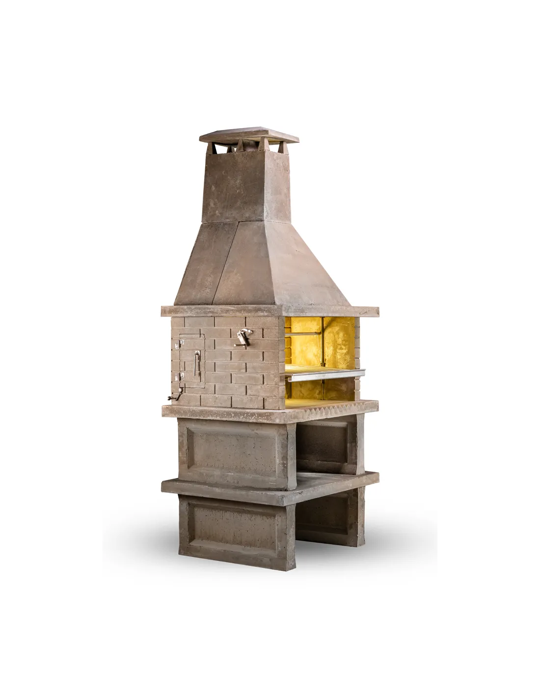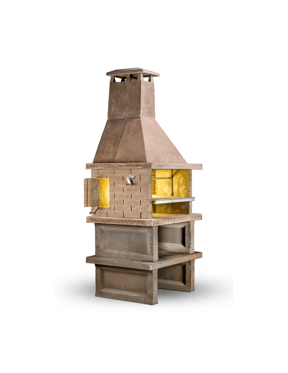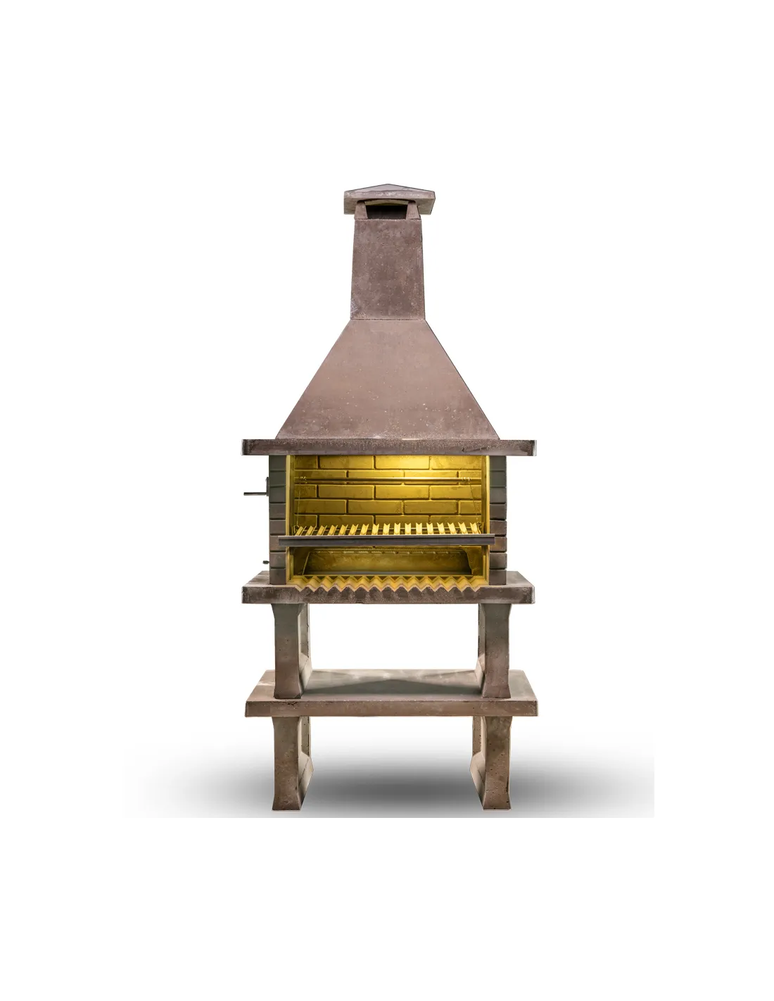 Cheminée double avec brasero arrière pour produire des braises et rester à distance du feu et de la fumée.