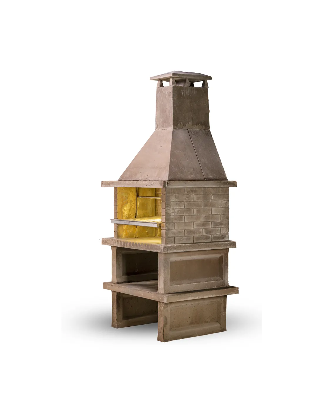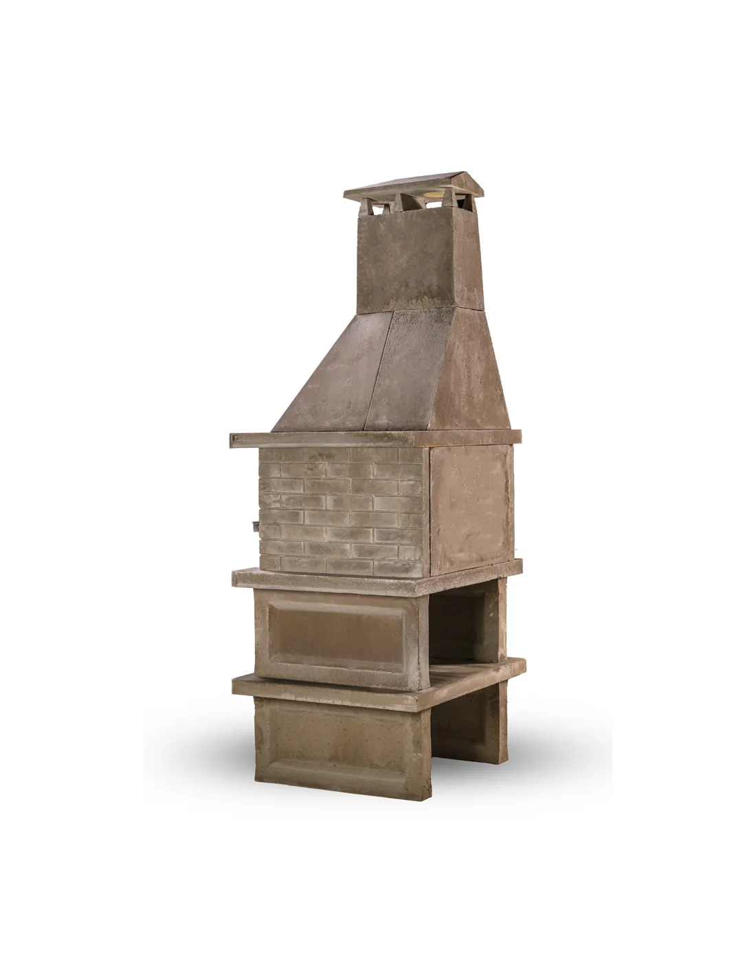 Barbecue avec brasero, double cheminée et support avec étagère